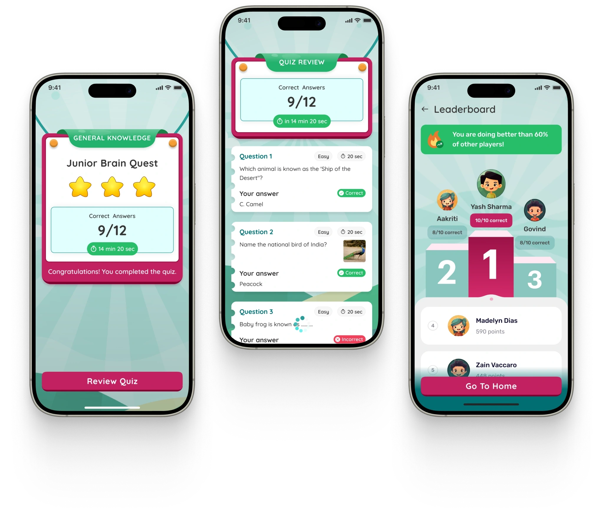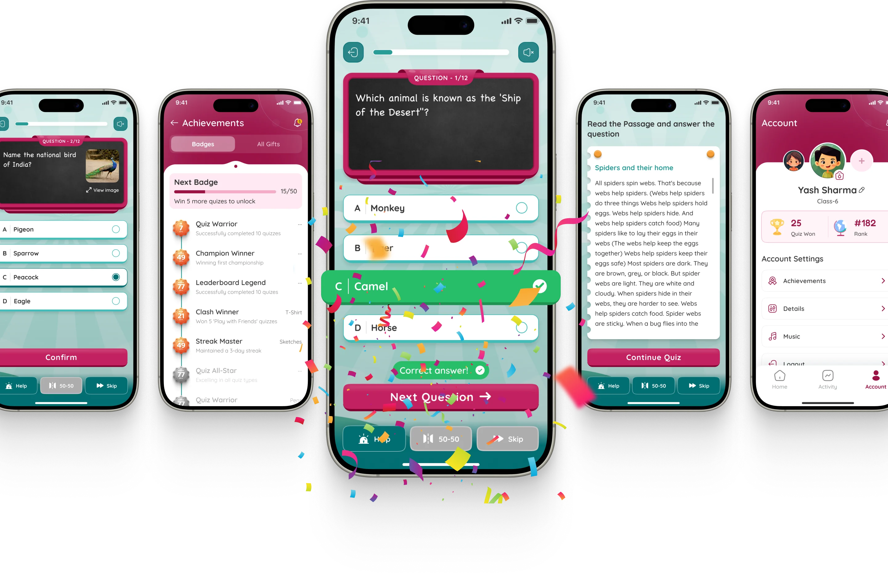 I was assigned to this project along with a team of designers to create an interactive quiz app tailored for kids. The objective was to design an engaging and educational experience that not only tested knowledge but also encouraged curiosity and learning in a fun way.