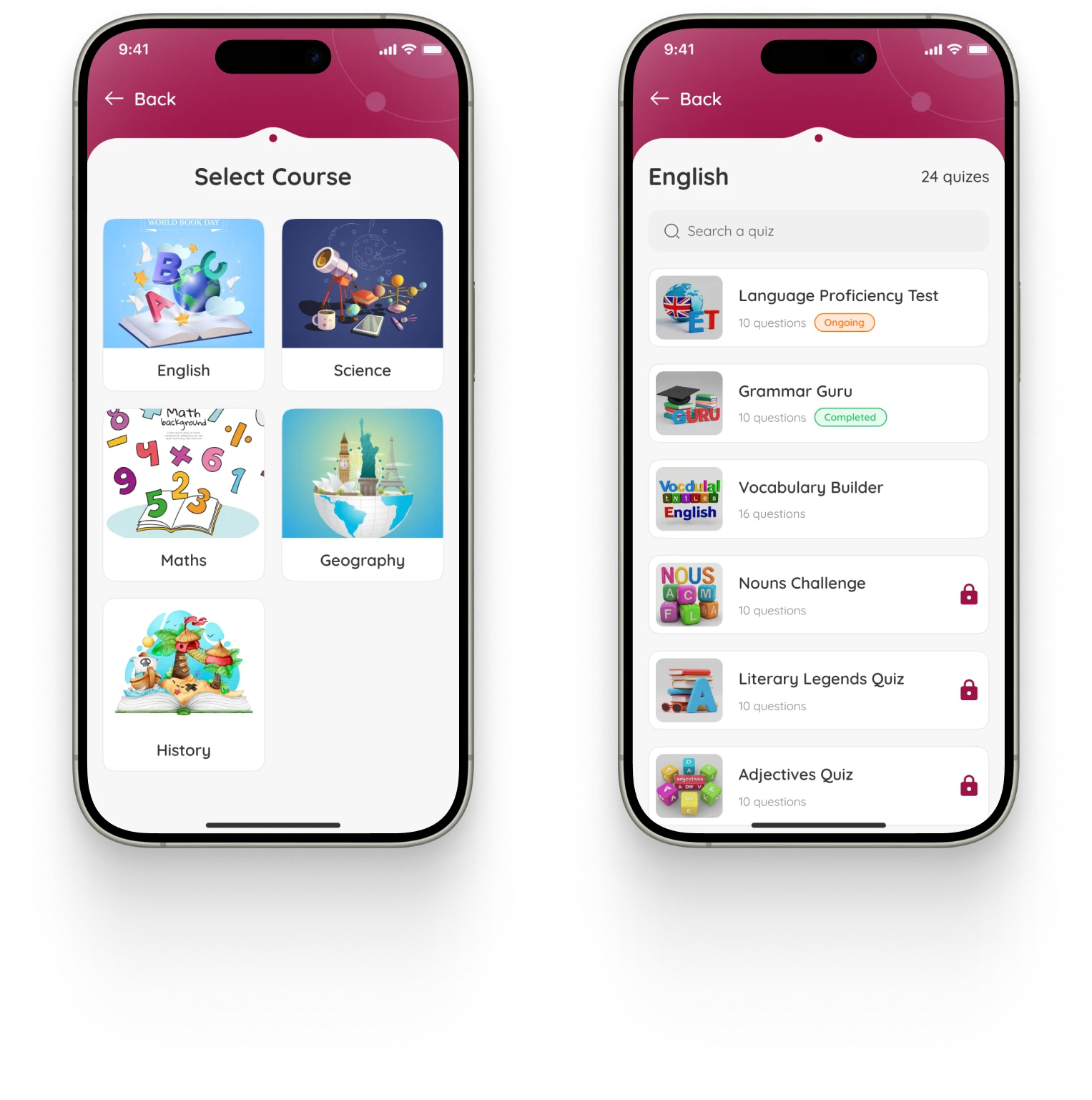 Through this entry point users can Choose subject and quiz available for it to access to relevant quizzes.