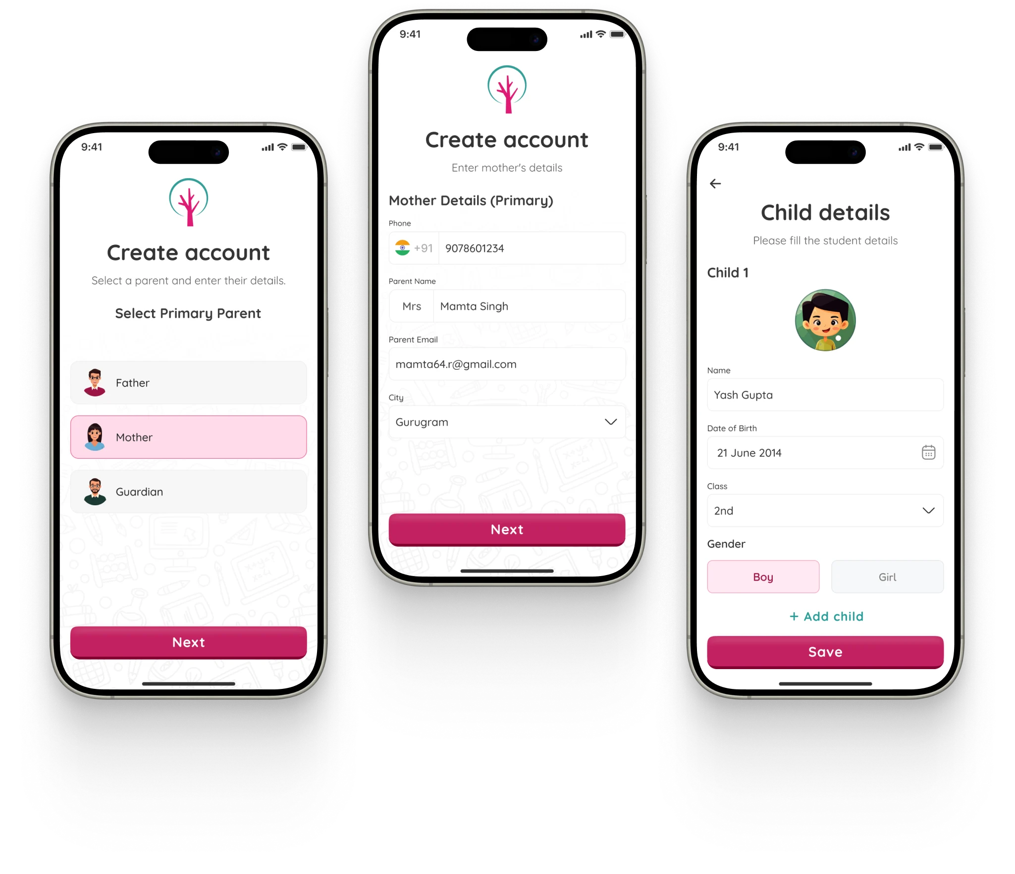 Frictionless parent onboarding ensuring parents could register and add child details in under 2mins.