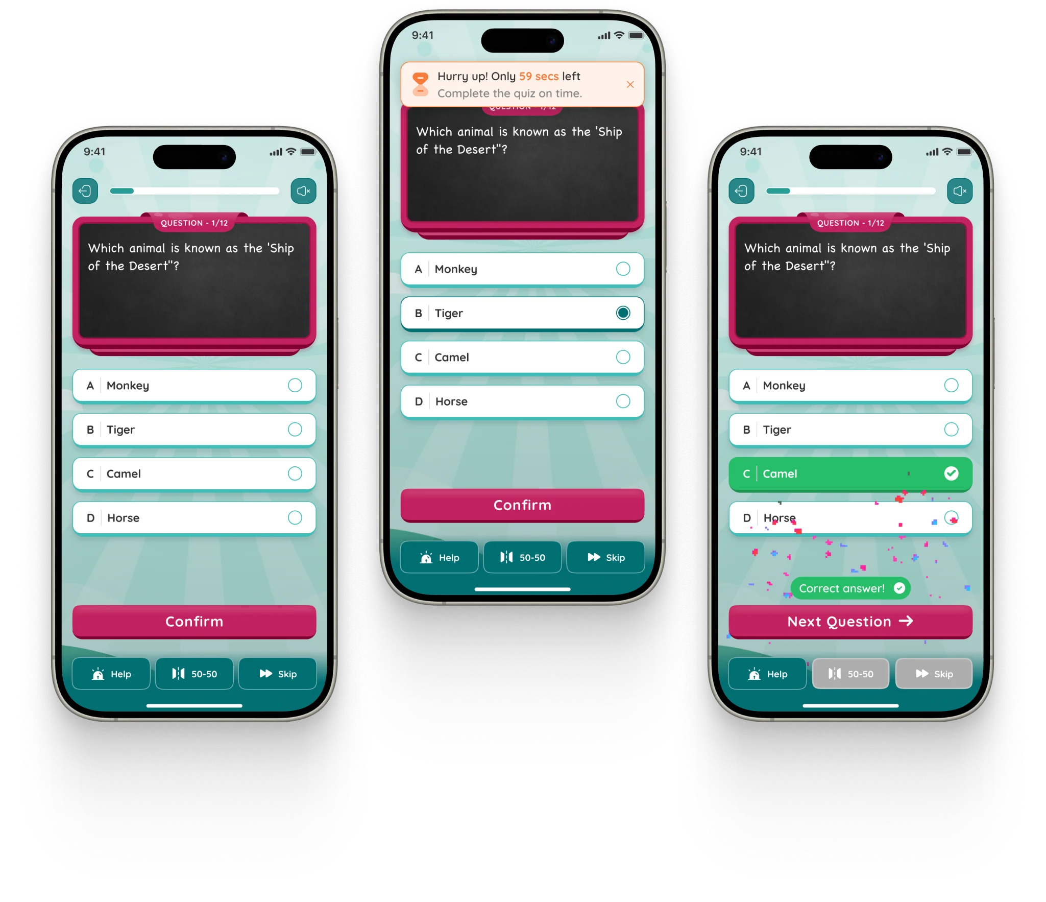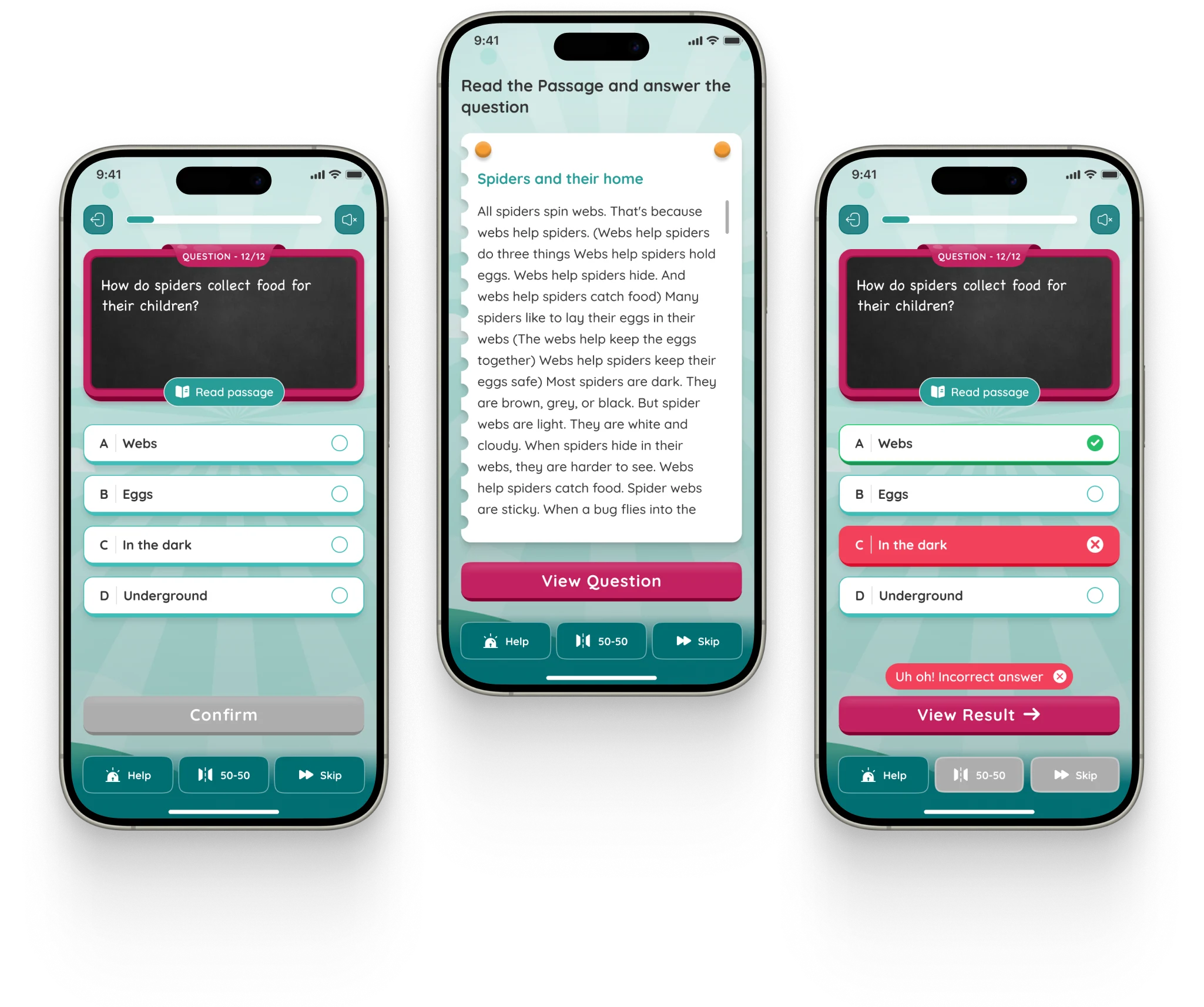 Turn screen time into learning time with engaging quizzes and instant feedbacks!
