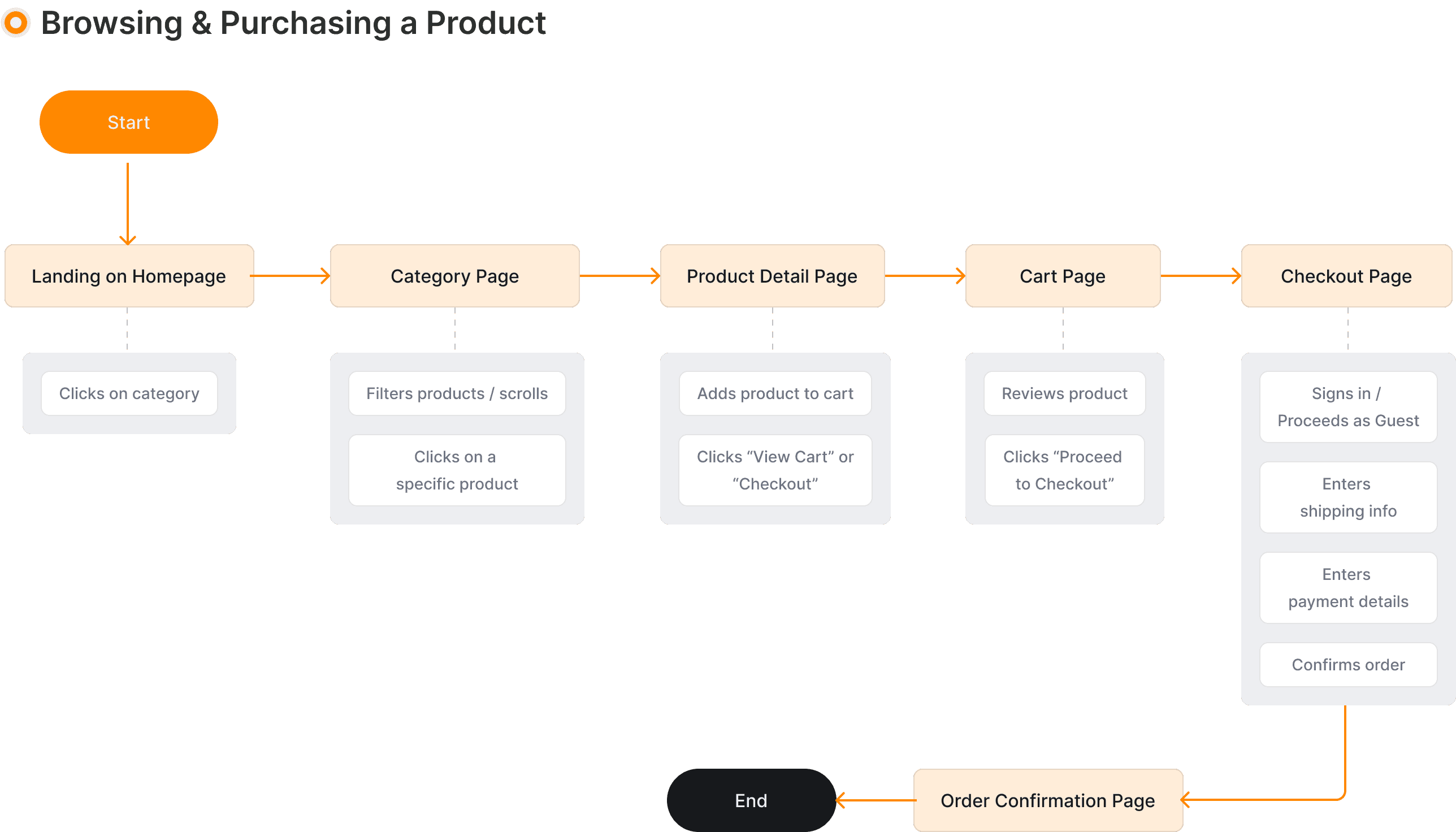 The User Flow Diagram is made to visualize how users navigate from browsing to purchase. It helps identify friction points and optimize the experience for smoother conversions.